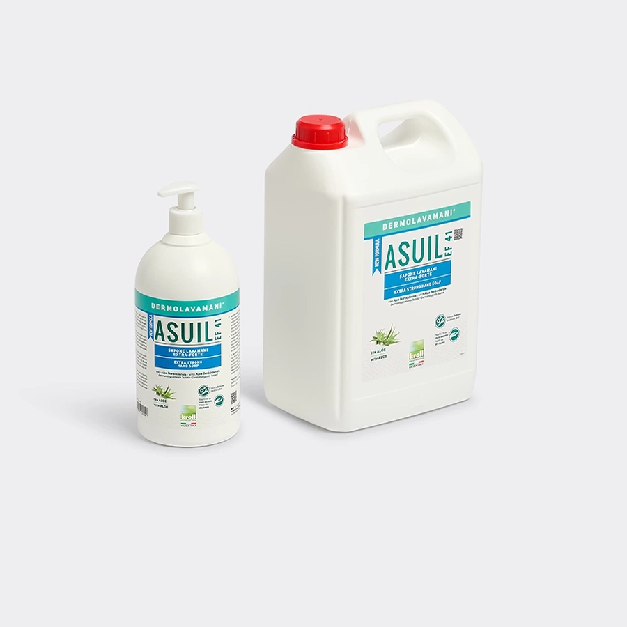 Asuil® EF 41 è un sapone liquido lavamani extra-forte, indicato per la rimozione di sporchi ostinati per settori come quelli industriali, della chimica, dell’oleodinamica, e molti altri. È formulato utilizzando saponi e tensioattivi di origine naturale vegetale da fonti rinnovabili, ed è arricchito con estratto di Aloe; queste caratteristiche garantiscono mani morbide e profumate dopo l’utilizzo. Compatibilità cutanea dermatologicamente testata.