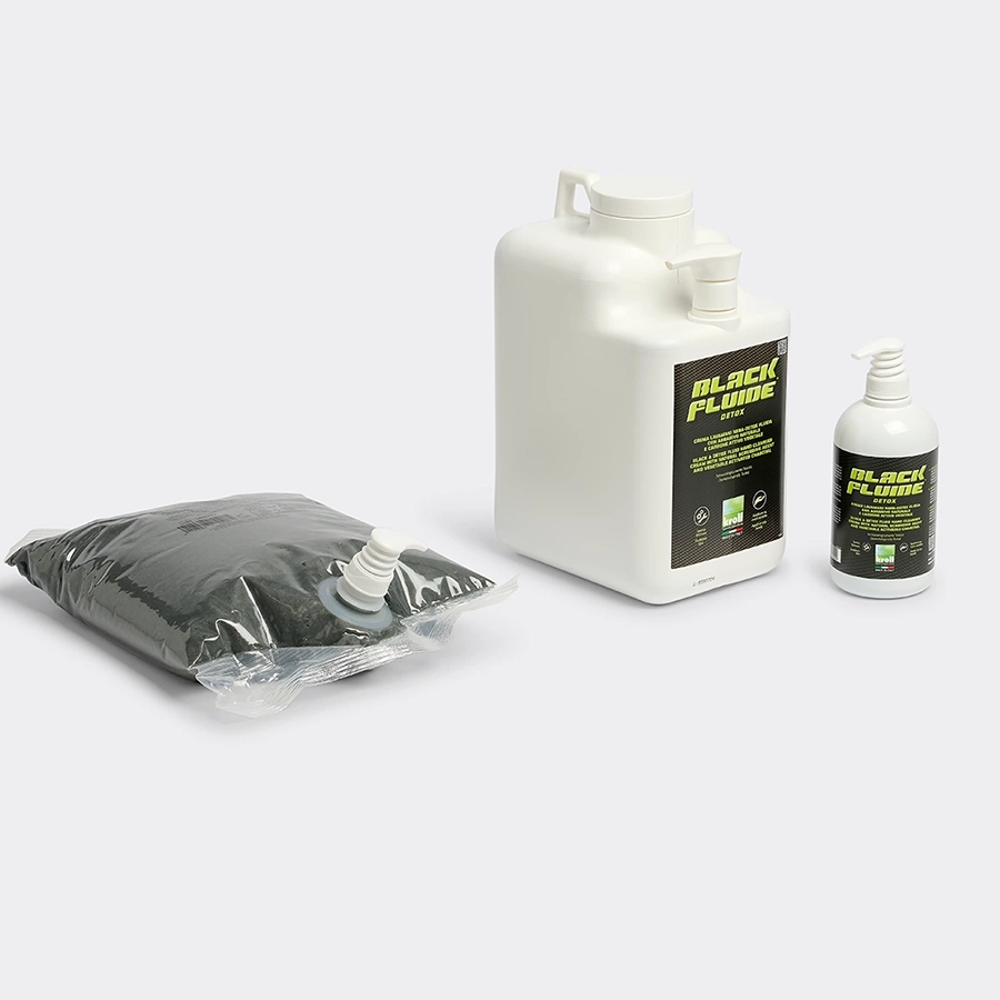 Blackfluide® è una crema lavamani fluida concentrata a elevato potere lavante. La sua formula, che comprende abrasivi totalmente naturali e carbone attivo derivato dalla noce di cocco, riconosciuto per le capacità detossinanti e sbiancanti, lascia la pelle morbida, pulita e piacevolmente profumata. La compatibilità cutanea di Blackfluide® è dermatologicamente testata.