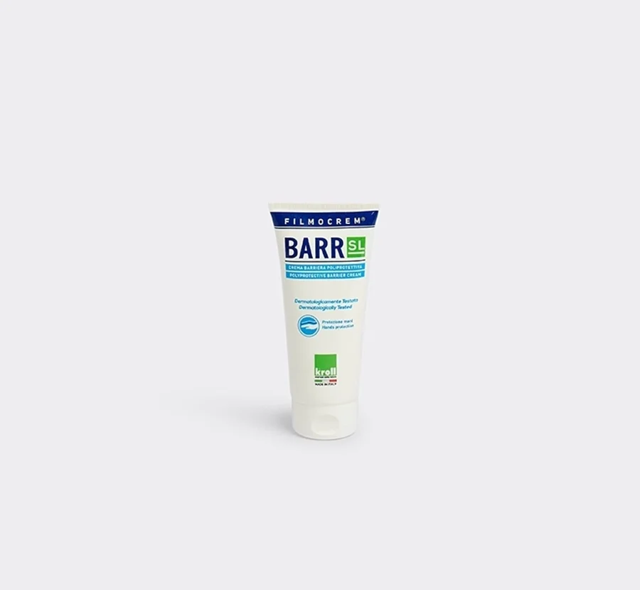 Barr SL è una crema barriera poliprotettiva, in grado di proteggere efficacemente l’epidermide delle mani dal contatto con soluzioni acquose, emulsioni, oli, acquaragia, lubrificanti, carburanti, solventi, colle, resine e da sostanze come la fuliggine. La sua formulazione talcata a idratazione bilanciata e il pH isoepidermico riducono l’assorbimento delle sostanze con cui si viene a contatto. Una volta utilizzata si assorbe rapidamente senza ungere. La compatibilità cutanea di Barr SL Poliprotettiva è dermatologicamente testata.