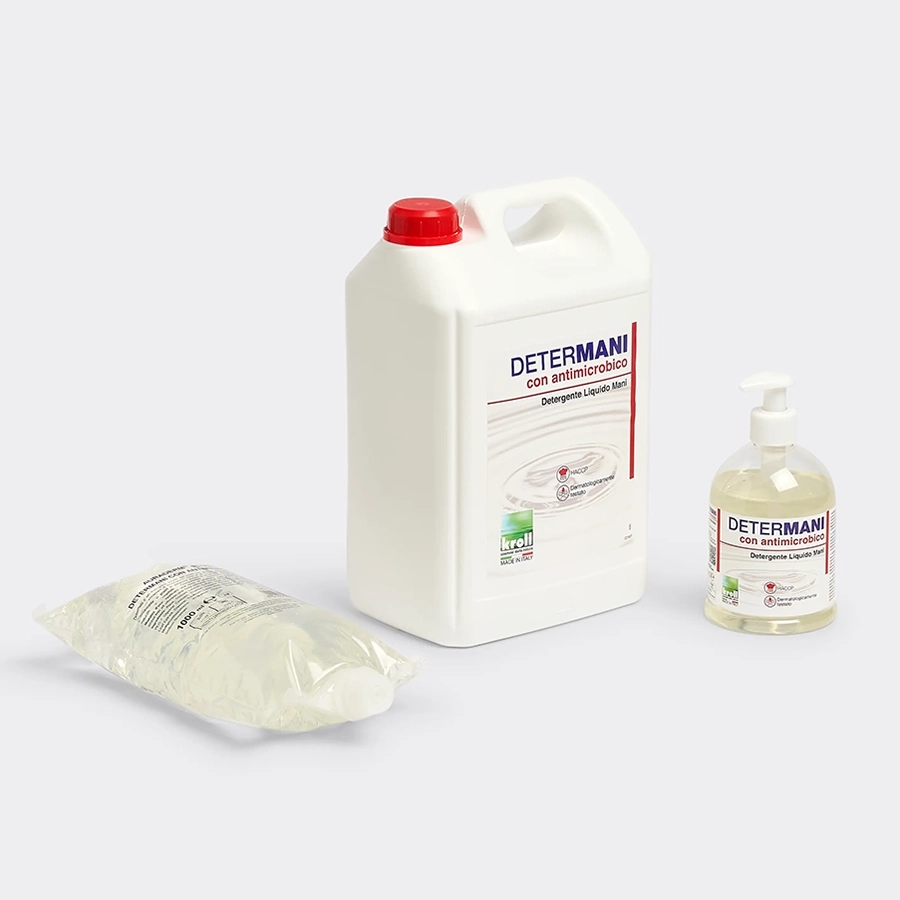 Il Determani con antimicrobico (HACCP) è un detergente liquido per mani con principi attivi selezionati, incolore ed esente da fragranze, ideale per usi frequenti. Grazie alla presenza di Rosmarino, Timo e Triclosan, svolge un’azione detergente e deodorante, in grado di garantire pulizia e sicurezza; contiene inoltre tensioattivi di origine naturale e vegetale da fonti rinnovabili. Compatibilità cutanea dermatologicamente testata.