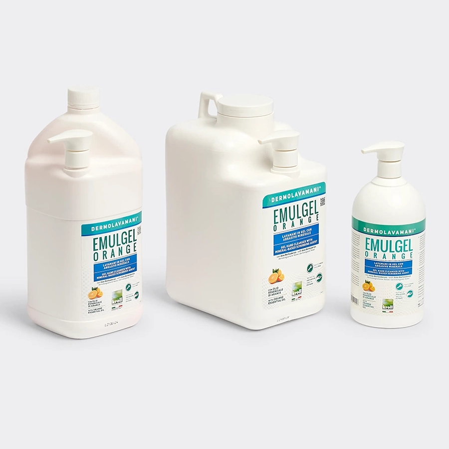 Emulgel Orange è un lavamani in gel, studiato per eliminare dalle mani lo sporco più resistente in numerosi settori. Lo sporco viene rimosso grazie alla combinazione bilanciata di saponi e tensioattivi di origine naturale vegetale da fonti rinnovabili e dell'abrasivo inerte micronizzato. Il prodotto è arricchito con oli essenziali di arance ed estratto di aloe, lascia le mani morbide e piacevolmente profumate. La compatibilità cutanea di Emulgel Orange è dermatologicamente testata.