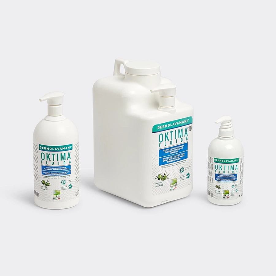 Oktima® Fluida è una crema fluida, formulata specificatamente per la rimozione dalle mani di sporchi resistenti, consentendo di ottenere una pulizia rapida e profonda per i settori industriali come quello meccanico, navale, edile, movimento terra, mezzi pesanti, e molti altri. La presenza di saponi e tensioattivi di origine naturale vegetale da fonti rinnovabili, abrasivi inerti micronizzati e l’estratto di aloe fanno sì che il prodotto rispetti il delicato equilibrio della pelle, lasciando le mani morbide e piacevolmente profumate. Compatibilità cutanea dermatologicamente testata.